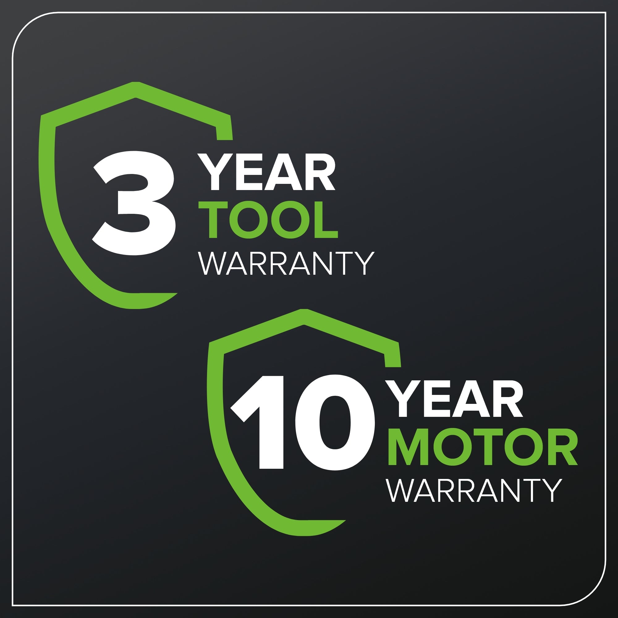 - 3 Year Limited Tool & 10 Year Motor Warranty