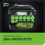 - Included 24V Battery powers 150+Greenworks 24V tools