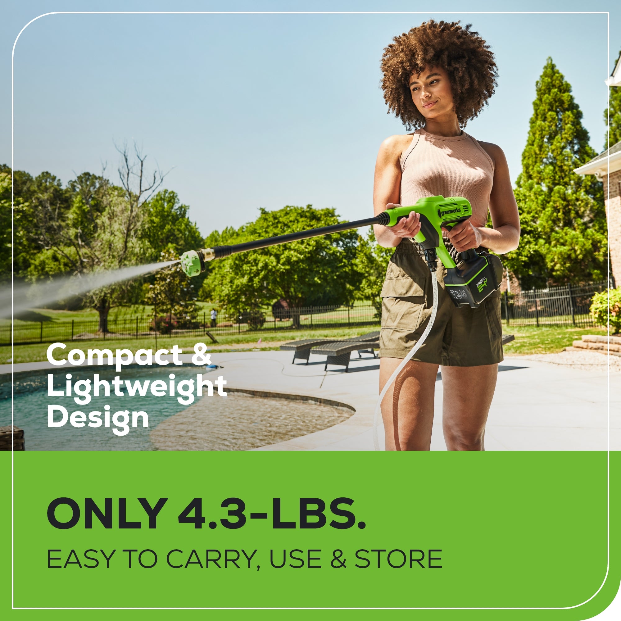 - 600-PSI Powered by a Greenworks Lithium-Ion Battery