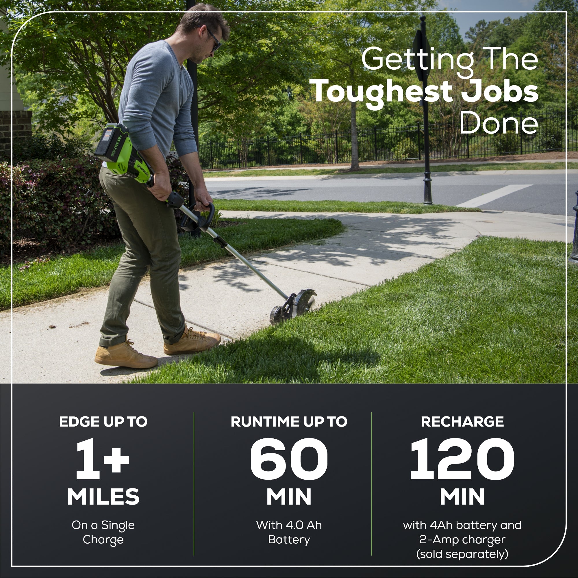 • Power 75+ Tools with any Greenworks 40V Battery (battery not included)