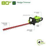 80V 26″ Cordless Battery Hedge Trimmer(1.1″ cut, 3200 SPM) w/ 2.0Ah Battery & Charger